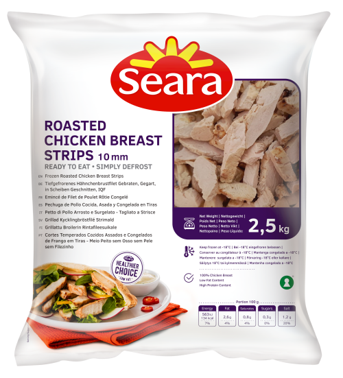 Suculenta pechuga de pollo, asada, cortada en tiras y enviada directamente a su congelador. Listo para comer en minutos, como pieza central de una deliciosa cocina, desde curry hasta ensaladas y salteados. Nuestro pollo, naturalmente rico en proteínas y bajo en grasas, proviene de las mejores granjas e instalaciones del mundo.