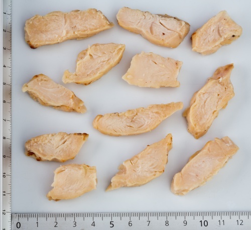 Suculento solomillo de pollo, asado y cortado en tiras. Listo para comer en minutos, como pieza central de una deliciosa cocina, desde curry hasta ensaladas y salteados.